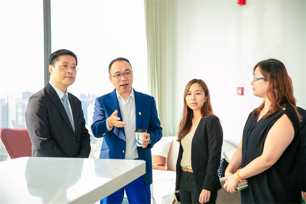 中國香港(地區)商會-廣西會長潘家穰(左二)向參會嘉賓介紹中心