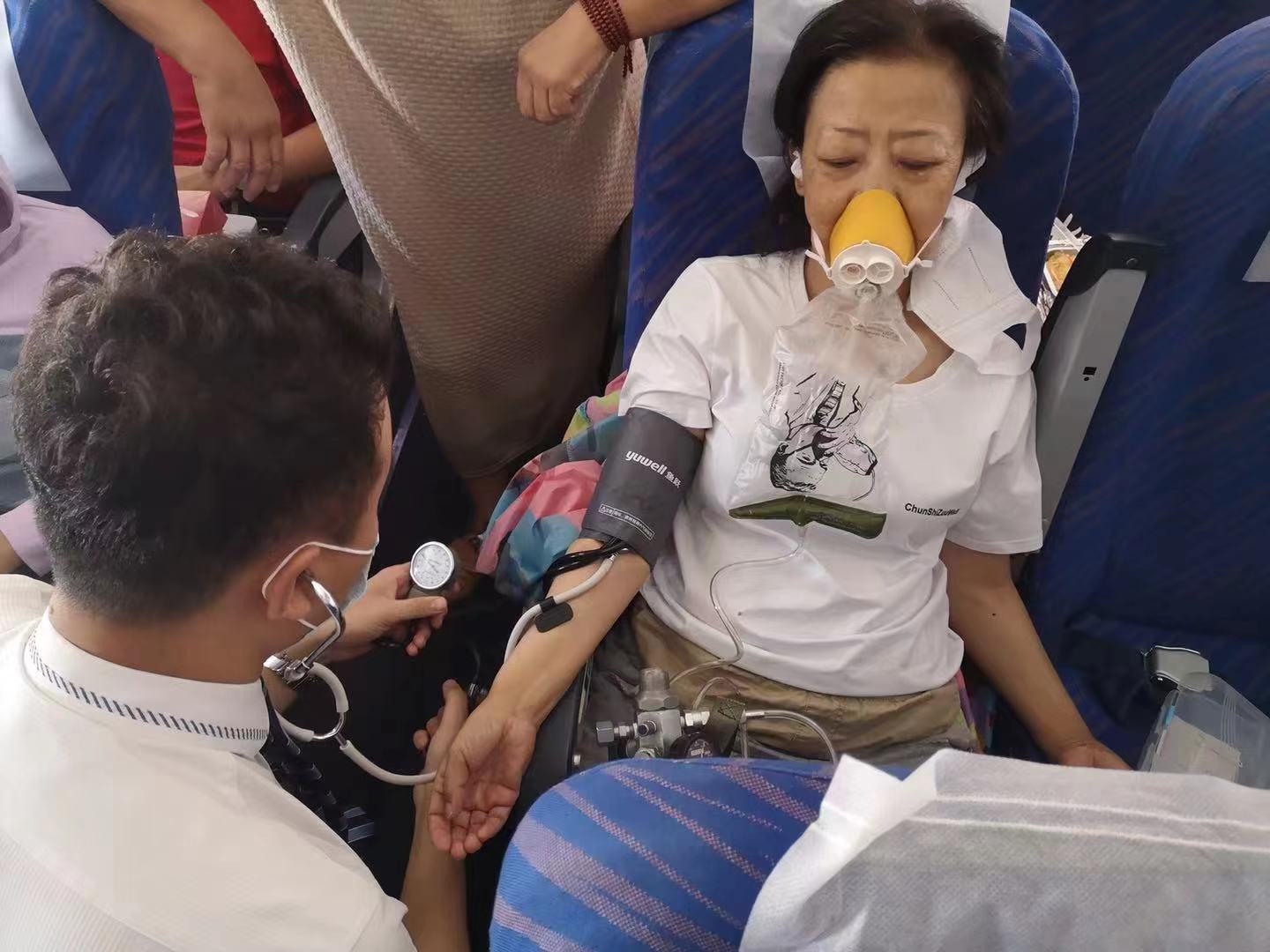 當日,飛機平飛後,旅客李女士向乘務員告知身體不適,自述有心臟病史。該乘客出現呼吸困難、面色發白、嘴唇發黑紫且身體發抖的症狀,乘務長李陽立即廣播找醫生,不巧的是此航班無醫生搭乘。時間不等人,李陽立刻打開應急醫療箱,取出血壓計為旅客測量血壓(150/50),並採取吸氧及保暖等措施對李女士進行施救,李女士的狀態漸漸有所好轉。飛機落地後救護車及時到位,李女士在下機時激動地握着李陽的手說:「等我好了會聯繫你。」李女士家人流下了感激的淚水,對李陽表達了深深的謝意。