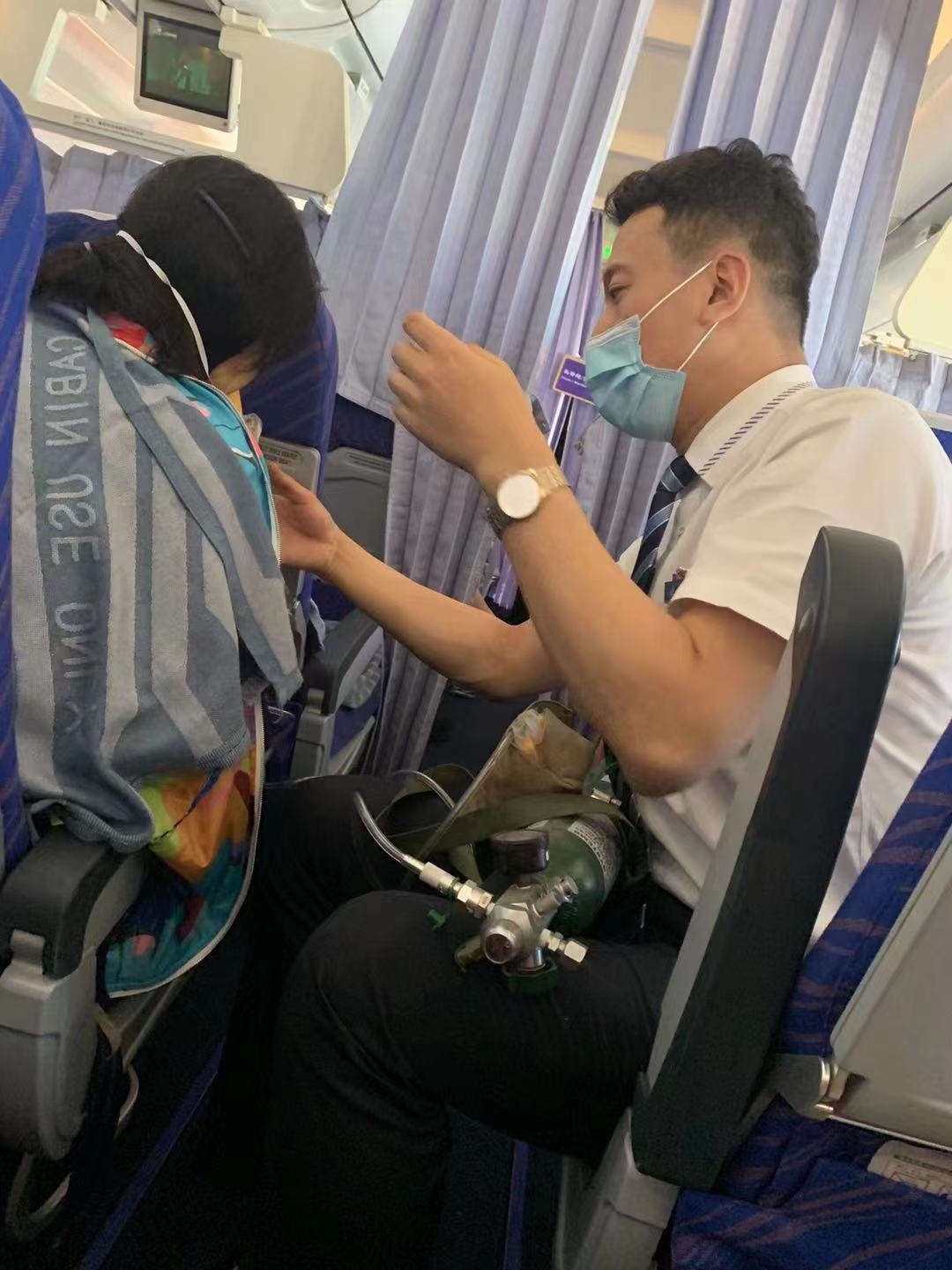 7月26日,中國南航CZ3906哈爾濱-廣州航班飛行途中一名乘客突發「心臟病」舊疾,在危急情況下,乘務長李陽沉着施救,乘客化險為夷。