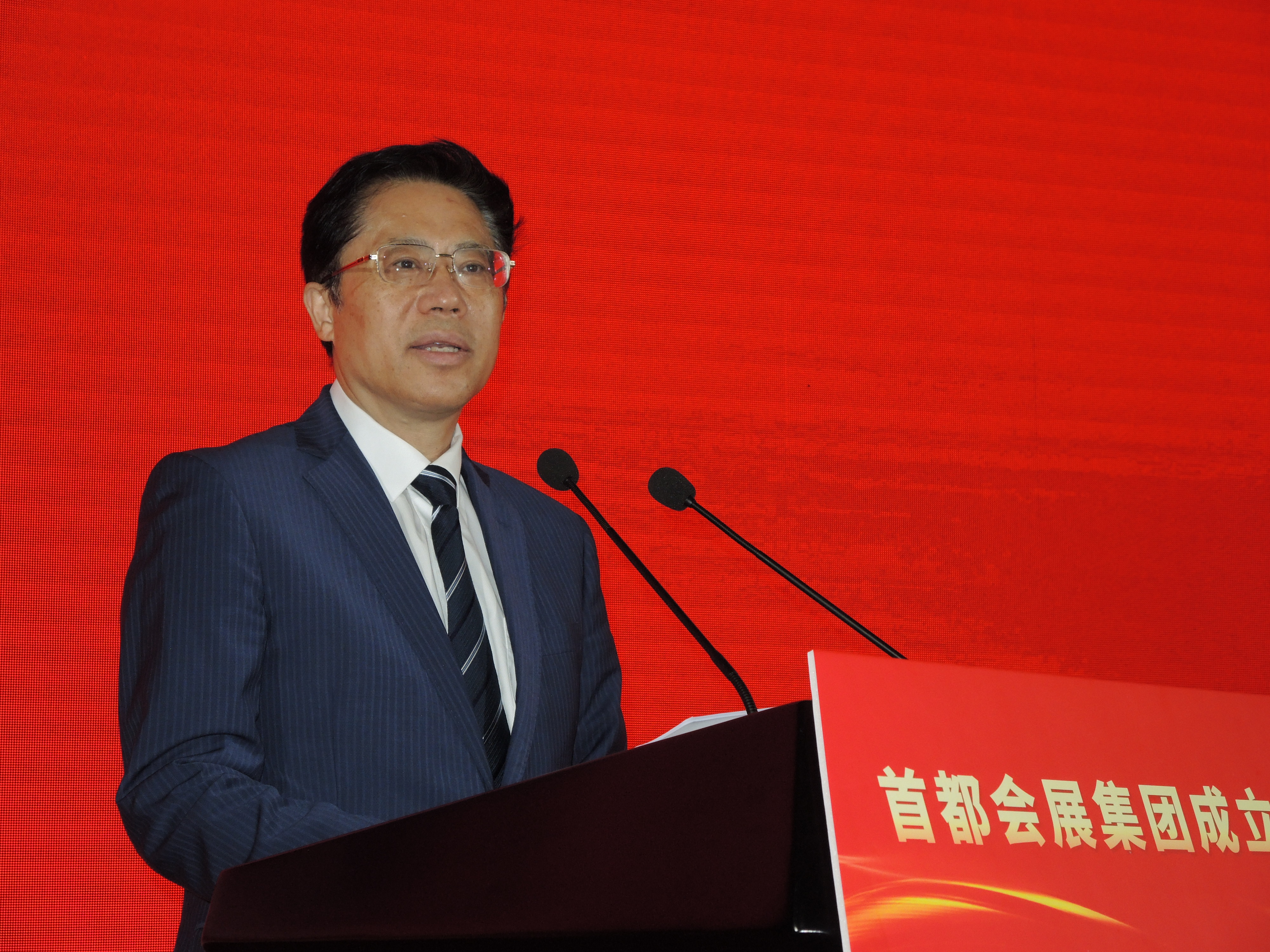 新成立的首都會展集團舉行成立儀式,北京市國資委、市商務局共同為企業授牌
