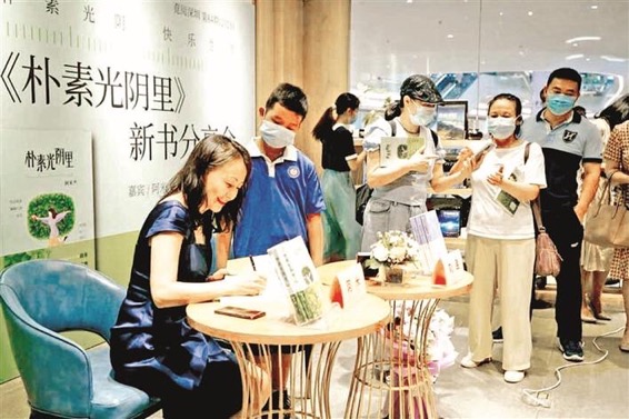 7月31日,寶安女作家阿米的新書《樸素光陰里》分享會在覔書店(壹方城店)舉行。現場上百名讀者聆聽了阿米關於生活、愛情、工作與成長的分享。