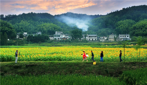 產業興,農村旺。在鄉村振興實施過程中,該村緊密圍繞華東休閒養生第一村品牌,通過打造特色向日葵賞花基地,並實行向日葵、油菜輪種模式,形成了“三月油菜花”、“十月向陽花”的黃山市特色旅遊品牌,年均吸引遊客10萬餘人。“我們通過對現有資源的開發利用,成功註冊了‘貞壽蜀源’‘崙麓泉’等商標,並開發了葵花油、菜籽油等農副產品及以向日葵為元素的文創產品近10餘件,2020年累計銷售近2萬餘元。”蜀源村黨支部書記、村委會主任劉碧雲介紹道。