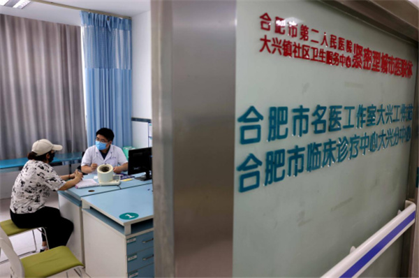 2021年8月3日,在合肥市瑤海區大興鎮社區衛生服務中心的「名醫工作室」,合肥市第二人民醫院的專家為患者進行診療