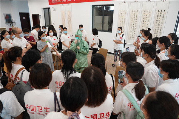 「青春最美麗,抗疫最光榮」,中南大學湘雅醫院院長雷光華為醫療隊授旗並叮囑,一是使命光榮,切實做好工作;二是天氣炎熱,切實做好防暑;三是病毒兇險,切實做好防控。「祝願大家豪情滿懷地開赴戰場,平平安安地回到醫院,圓滿完成任務,勝利凱旋。」雷光華說。