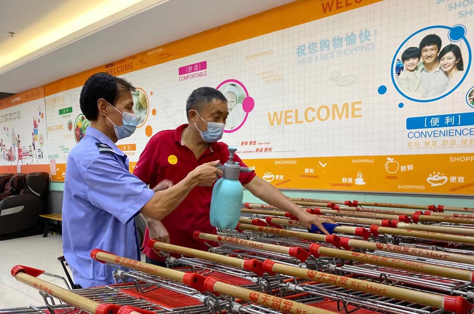 8月1日下午,在屯溪區天潤發超市,記者看到,入口處擺放有消毒液、測溫儀、口罩等防疫物品。市民們紛紛按照要求,在佩戴口罩、掃碼、測溫後,有序地進入超市。據瞭解,7月20日之前,天潤發超市所有員工均已完成了新冠疫苗接種,超市也嚴格按照疫情防控的要求,定期對扶梯、購物車、購物籃、收銀臺等公共區域進行消毒。天潤發超市運營總監張永清告訴記者,除了加密消毒頻次以外,還安排了專人在賣場裏巡邏,一旦發現有顧客佩戴口罩不規範的,工作人員都會上前進行提醒,確保為每位顧客提供一個放心、安心的購物場所。