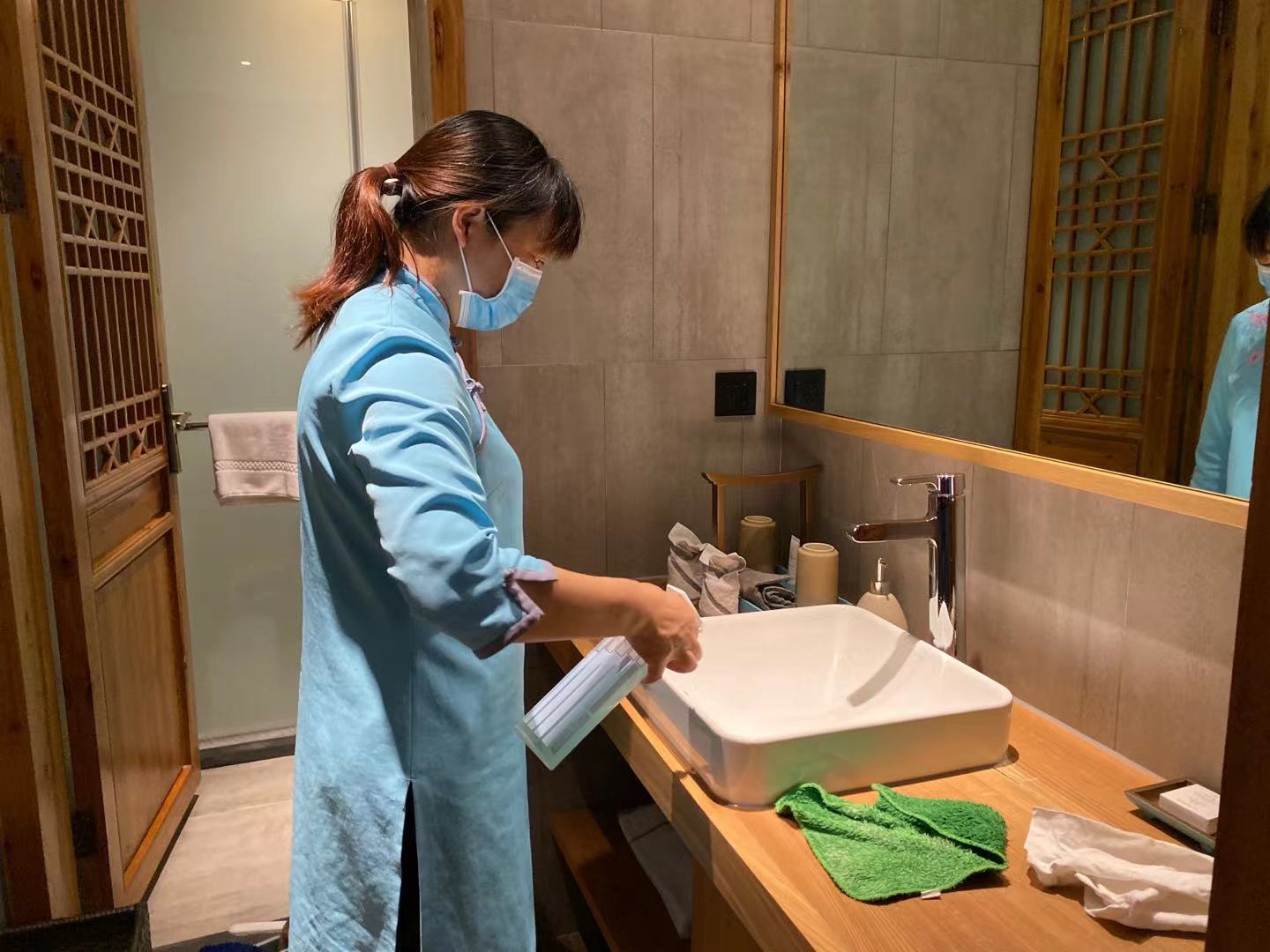 「您好,請問最近14天內有沒有去過高中風險地區……」8月3日,在老街還淳巷,開元頤居民宿的前廳負責人胡瀟正在前臺向辦理入住的顧客詢問,在對方出示健康碼、行程碼,確定對方14天內未經過中高風險地區並且測量體溫後,才為客人辦理入住手續。胡瀟告訴記者,如果發現有來自中高風險地區的客人會第一時間向老街社區進行報告。同時,每天都會對客人入住的房間進行保潔和消殺,定期聘請專業的公司對酒店進行全方位、無死角的消殺。