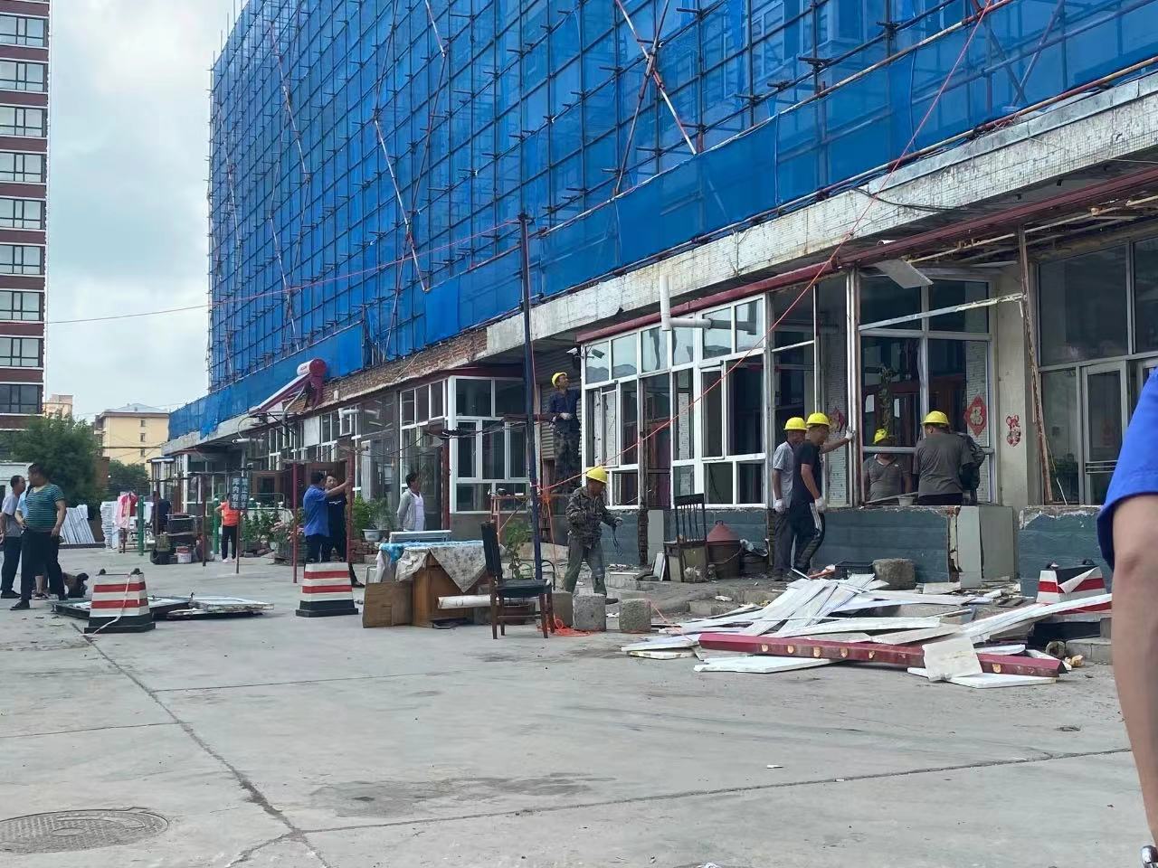 為推進老舊小區改造項目順利實施,消除安全隱患。近日,縣城市管理綜合執法大隊在公安巡特警、醫療等部門的配合下,僅用時兩天,就對宏達小區院內5-6號樓總面積452平方米的29個違建門斗進行了集中幫拆。