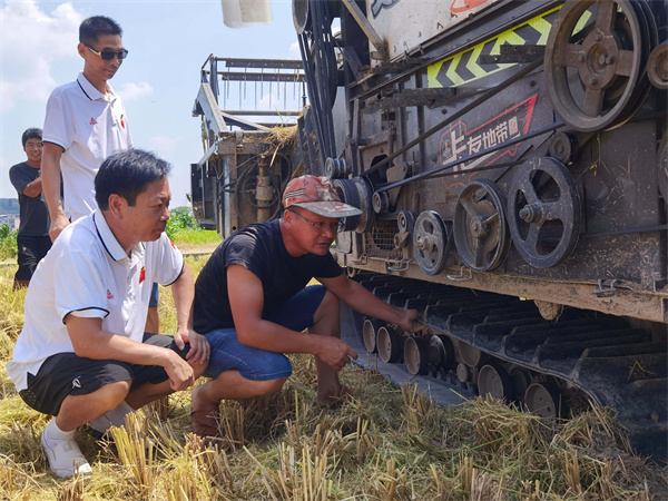 截止目前,道縣已完成早稻收割21.6萬畝中,其中機收20.7萬畝,完成晚稻種植16.8萬畝,其中機插機拋10.5萬畝。為更好地服務「雙搶」,道縣結合「我為群眾辦實事」,一方面抽調精兵強將12名,組成3個農機黨員服務突擊隊,分赴各自責任區,義務幫助農民巡迴檢修、安裝、調試農機具,確保農機具以良好的技術狀態投入生產。另一方面加強科學調度,儘可能利用好現有的農機裝備資源,提高農機具的利用率和農機手的經濟效益,避免「有機無田或有田無機」的現象發生,按計劃科學合理安排作業。「現在我們還將微信交流群、QQ群等社交平台整合起來,第一時間發佈相關信息,根據完成時間、作業類型和作業面積等不同需求,完成提交一鍵下單。」道縣農機事務中心推廣站負責人蔣坤說。