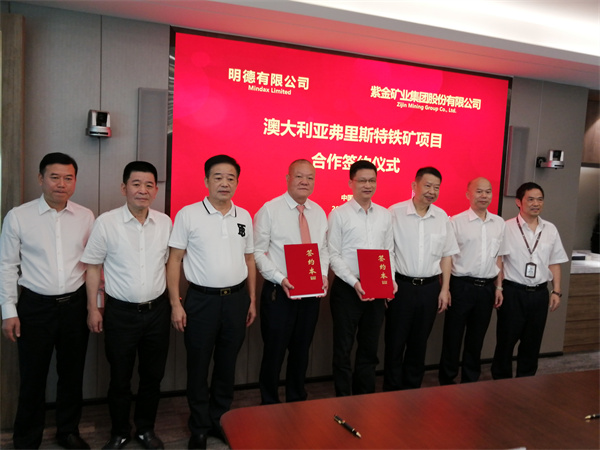 紫金礦業是目前中國有色礦業控制金屬資源儲量和產量最大、國際化程度最高、綜合競爭力最強的龍頭企業之一,此番雙方正式簽約合作,旨在發揮各自優勢,藉助紫金集團強大的品牌實力,對澳洲明德公司所屬鐵礦進行開採開發。(葉晴 朱亞聖)