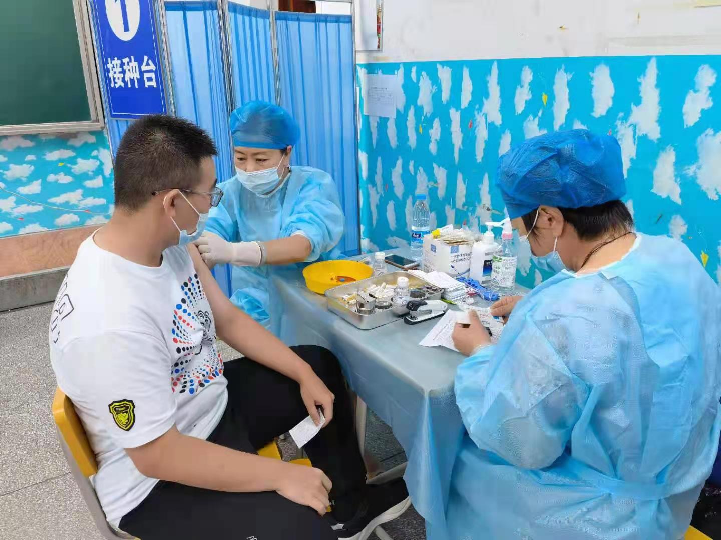 12-14歲人群為9年義務教育人群,於8月4日-5日在哈爾濱市東安英才學校和哈爾濱第55中學校兩個學校設立臨時接種點,進行集中接種。在醫務人員及學校志願者的有序組織下,出動疫苗接種隊伍3支,40餘人,醫療保障隊伍3支,12人次,圓滿完成了學校12-14歲人群的集中接種任務。在英才學校臨時接種點,整個接種程序嚴格按照疫苗接種工作流程執行,現場井然有序,從上午8點半開始,不到一上午時間,就完成初三和初二學生的接種。
