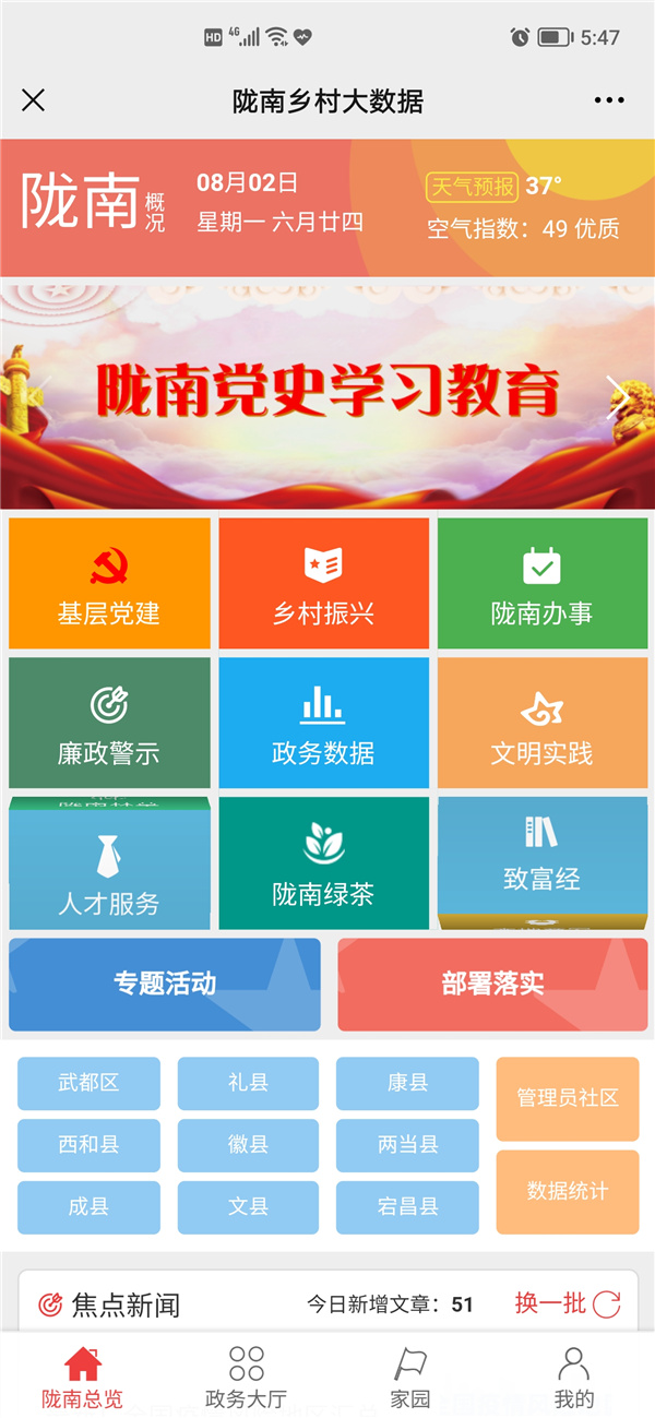 今年4月上旬,隴南立足現有的大數據工作基礎,依託「隴南融媒」小程序,所開發的黨史學習教育平台正式上線運行。