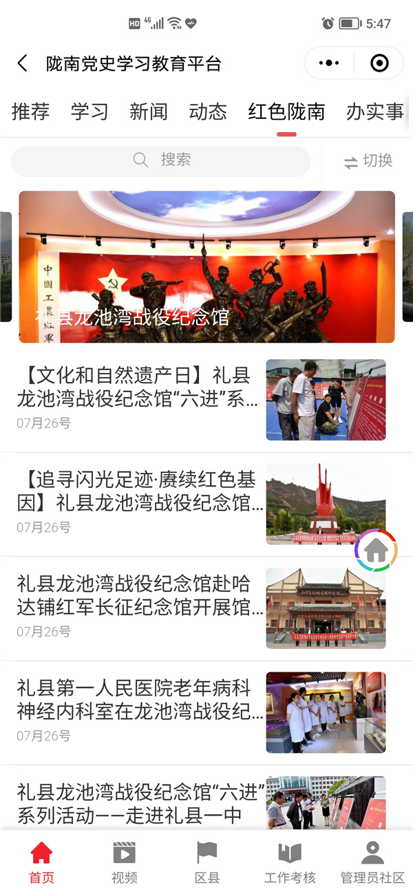記者了解到,該平台是隴南市開發集學習、宣傳、展示、交流、考核等功能為一體的手機移動端,有效推動全市黨史學習教育抓在經常、融入日常。