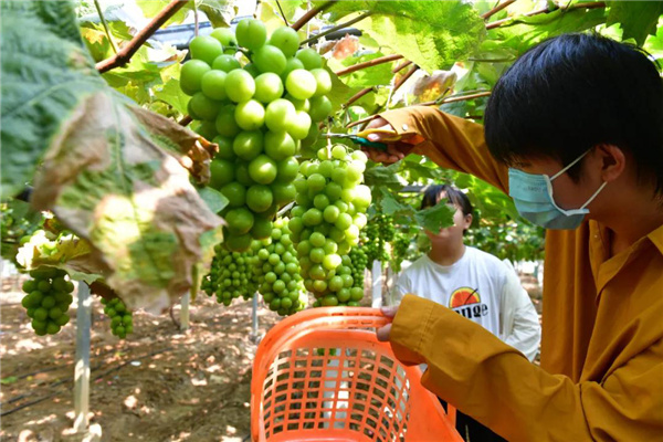 陽光玫瑰葡萄是網紅水果之一,被網友稱為「葡萄中的愛馬仕」。陽光玫瑰葡萄具有果大、肉脆、甜而不膩、耐儲運等特點,而且玫瑰香味濃郁,因此深受遊客青睞。據許精華介紹,生態園陽光玫瑰上市10多天以來,平均每天前來採摘的遊客約兩三百人次,而雙休時可達四五百人次,多以巢湖、合肥、肥東等周邊城市自助游家庭為主,此次陽光玫瑰採摘期可一直持續到十月底。「我們正在和相關科研單位深度合作,計劃在明年的陽光玫瑰葡萄種植中進行技術改進,以進一步提昇陽光玫瑰的品質。」許精華說。(黃慶松 王亮禮 龔舒斌)