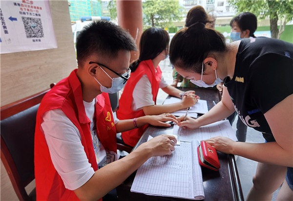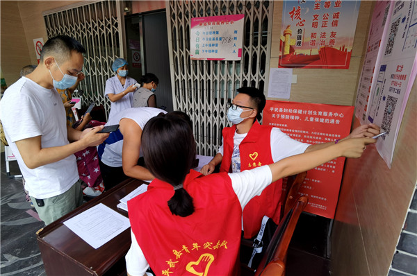 「請大家戴好口罩,保持距離」,「大家不要擁擠,按秩序排好隊」,「請先掃碼登記」...... 在縣城龍安鎮各個疫苗接種點,前來接種的群眾排起了長長的隊伍,團縣委組織志願者每天早早就來到現場,維護秩序、引導群眾、講解檢測流程、宣傳疫情防控知識,身着「紅馬甲」的志願者穿梭在人群中,成為一道亮麗的風景。周到的志願服務既讓接種群眾暖心,又提高了接種效率。龍安鎮政府街社區的志願者和網格員們穿梭在大街小巷,在轄區內大力宣傳疫情防控常識,核查居民新冠疫苗接種情況。「我們政府街社區目前有4980人,我們積極宣傳和動員,現在大部分居民均已接種新冠疫苗,還有極少部分沒完成接種的,我們正在進行宣傳和核查。」龍安鎮政府街社區相關負責人說,該社區除入戶進行宣傳外,還通過張貼宣傳畫、群發微信、短訊消息,邀請醫務人員為廣大居民「授課」等多種方式,督促未接種疫苗的居民到定點疫苗接種點接種疫苗,為保障轄區內廣大居民健康打下堅實基礎。