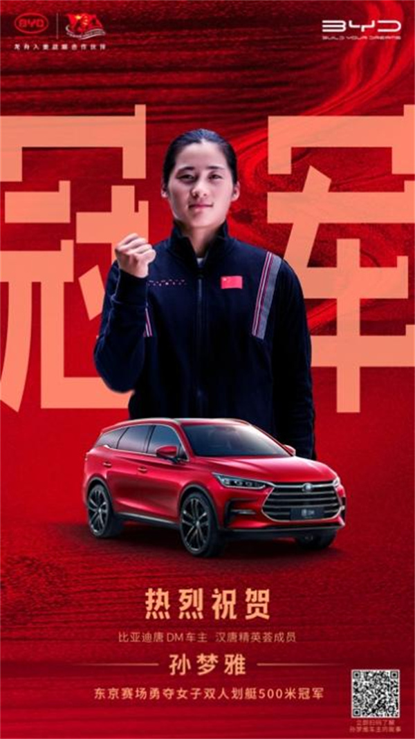 8月8日,東京奧運會落下帷幕,中國代表團表現優異,以38 枚金牌 32 枚銀牌 18 枚銅牌圓滿收官。中國皮划艇隊和賽艇隊更是迎來高光時刻,以2金2銀2銅創歷史最佳成績,盡顯中國速度。其中,比亞迪漢唐精英薈成員、漢唐車主——中國皮划艇國家隊運動員孫夢雅、劉浩,中國賽艇國家隊運動員劉治宇為中國代表團奪得1金2銀1銅,所參賽項目均收穫獎牌,意義非凡。