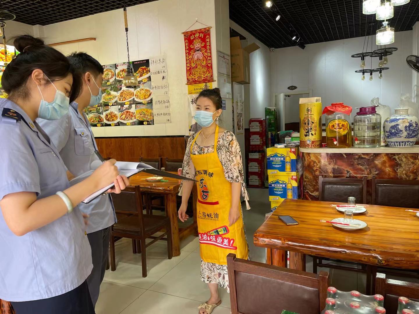 按照26號公告要求,對餐飲服務行業進行疫情防控工作檢查,重點對承辦婚宴等宴席場所進行全面排查,從就餐人員數量、疫情防控措施、從業人員核酸檢測及疫苗接種方面提出明確要求。藉助智慧化監管系統,在智慧終端上錄入餐飲從業人員疫苗接種情況。同時,與平房鎮政府聯動,共同對農村疫情防控工作進行監管。