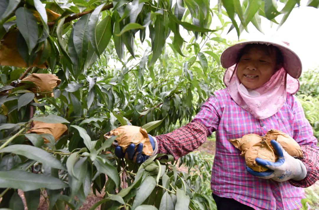 「今年公司種植了280畝桃樹,其中150畝錦繡黃桃正式進入成熟季節。」翟付梅說,這裡的黃桃有兩種吃法,硬着吃,汁甜肉脆,十分爽口;軟着吃,彷彿在喝桃汁,果肉一抿就化了。一入口就能感受到黃桃的香味,一口接一口,越吃越甜,多吃也不會發膩。她介紹說,該公司每年在當地用工就需要1000多人次,桃樹林下還養殖了2000多隻雞鴨,不僅能增加效益,還能達到綠色除草的目的。