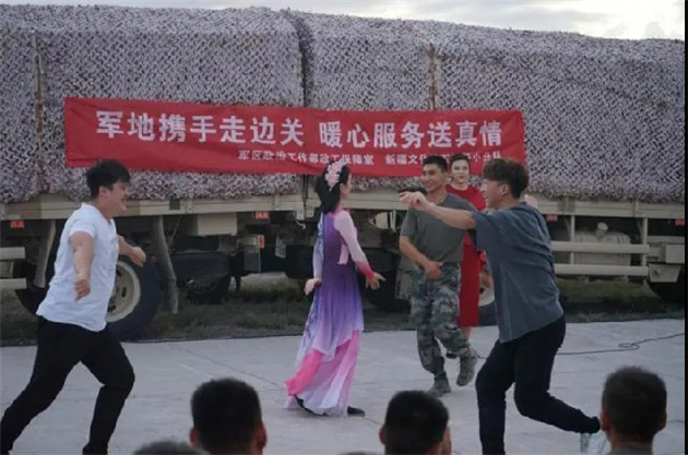 為進一步加強服務基層力度,大力推進軍民共建、和諧軍營建設,營造和諧融洽的軍民團結氛圍,新疆文化館與新疆軍區政治工作部於2021年8月4日至12日共同開展「石榴籽」文化小分隊送文化進軍營走邊防活動。