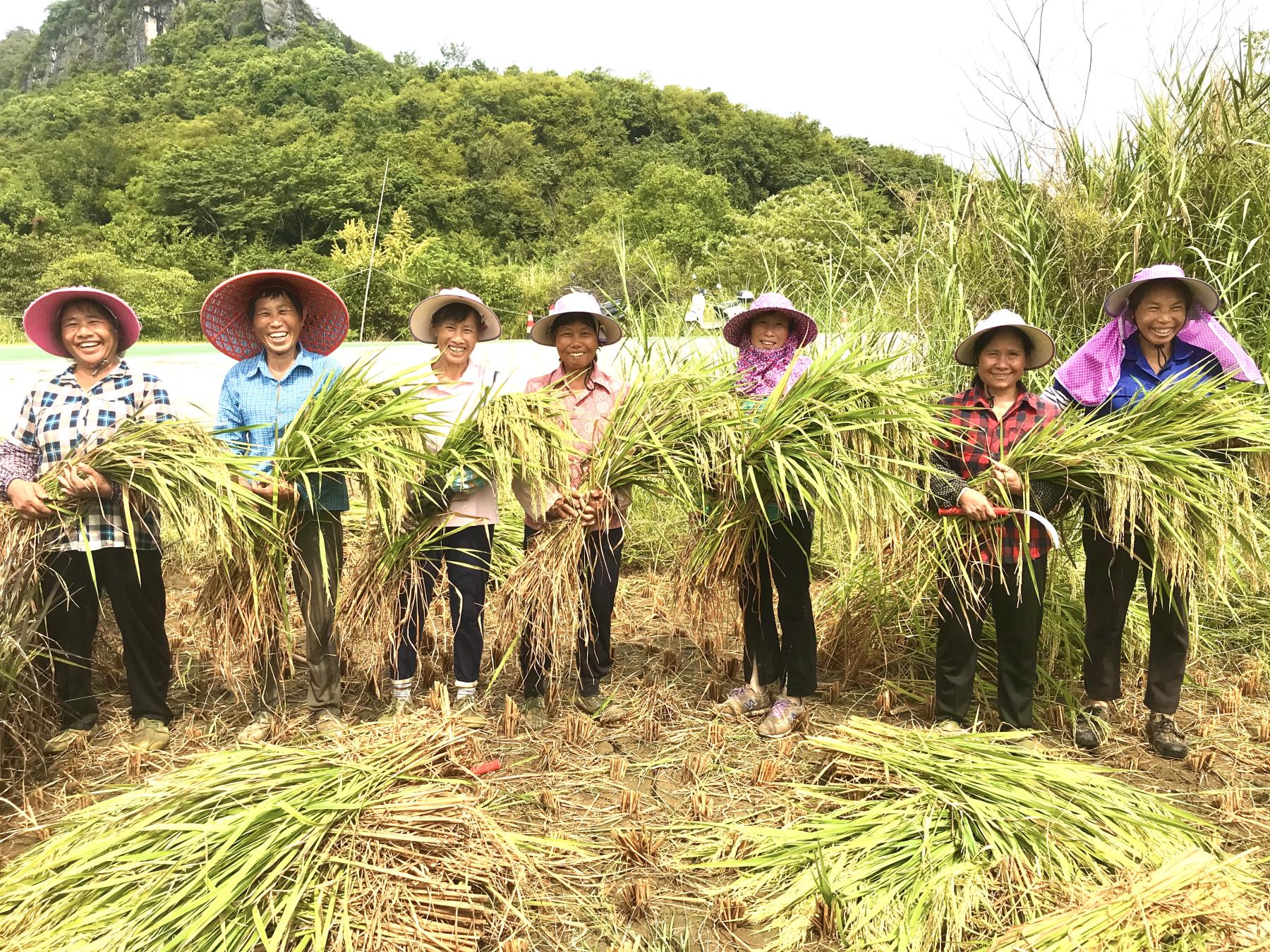 8月10日,在廣西桂林七星區華僑旅遊經濟區畔塘村稻田裏,收割機在稻田中穿梭作業,一派豐收景象。這是畔塘村豐澤源農業專業合作社在4月初種植的110畝富硒彩色水稻,總產量預計達到7.5萬斤,年收入可實現十二萬以上。該合作社通過在農田中描繪一幅幅創意圖景,形成極具觀賞價值的田園風光,從而帶動鄉村旅遊發展。