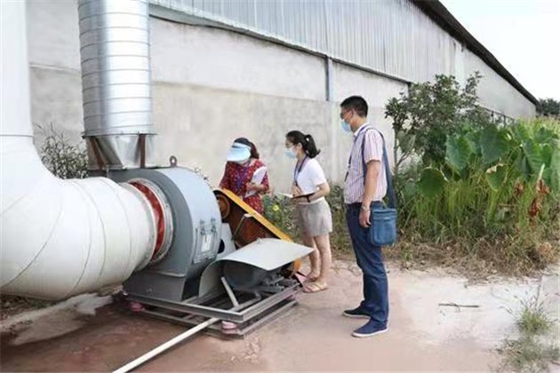 縣紀委監委環保問題整改專項督查組在綿陽市潤土生物科技有限公司查看車間空氣淨化設備是否正常運轉 鍾敏攝