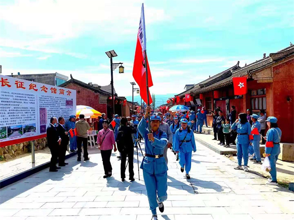 結合「學黨史辦實事」活動,在哈達鋪鎮區主街道懸掛了中國工農紅軍軍旗;組織群眾開展紅色文化演藝活動,目前共編排《紅星照耀哈達鋪》《紅軍從咱家鄉過》《哈達鋪里迎親人》《到陝北去》等實景劇6個,在紅軍街不定期演出,讓遊客親身體驗和感受紅色文化,營造濃厚的紅色文化氛圍,提升哈達鋪對外形象。