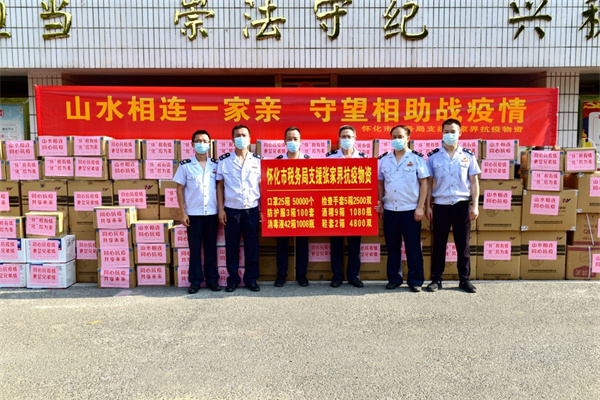 懷化市與張家界市山水相連,對於張家界突如其來的疫情,懷化稅務人積極以自己的實際行動支援張家界抗疫,在得知張家界防疫物資缺乏後,立即組織人員與當地的生產廠家和商家溝通聯繫,通過兩天加班加點,終於組織齊全了各類緊缺的防疫物資。