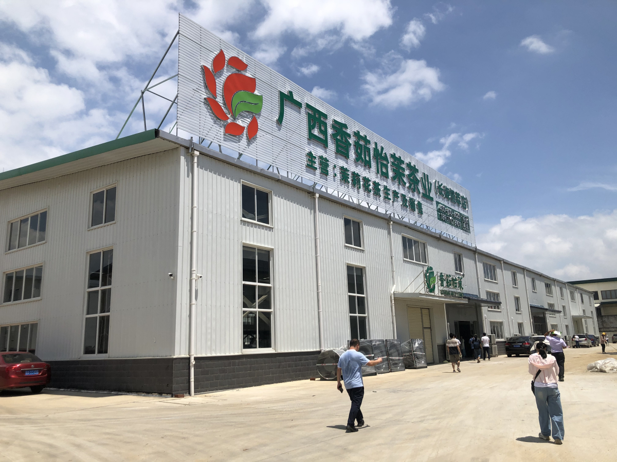廣西香茹怡茉茶業有限公司是橫州長海茶廠成立的一家子公司,是多個大牌企業的原料供貨商,擁有「香茹怡茉」茉莉花茶品牌。香茹怡茉茶業有限公司董事長覃霞介紹,儘管受到疫情影響,公司迅速轉換營銷思路,在擴展線下銷售的同時,發揮電商平台優勢,公司去年年產值達到1800萬,今年力爭實現2000萬。目前公司自主投入設備運用茉莉花茶離地加工工藝,提高了生產效率,保證加工過程中的衛生和美觀。