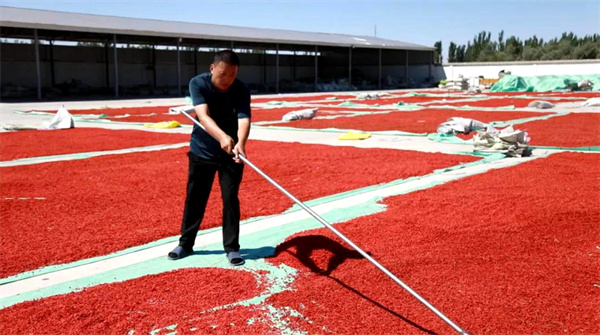 農戶在晾曬枸杞