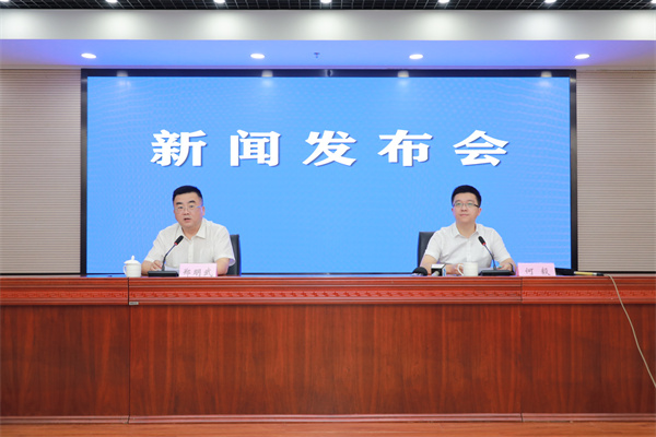 《發展多層次資本市場服務「三地一區」建設行動方案》新聞發佈會現場,安徽省委宣傳部副部長鄭明武(左)主持發佈會,省地方金融監管局黨組書記、局長何毅介紹有關情況