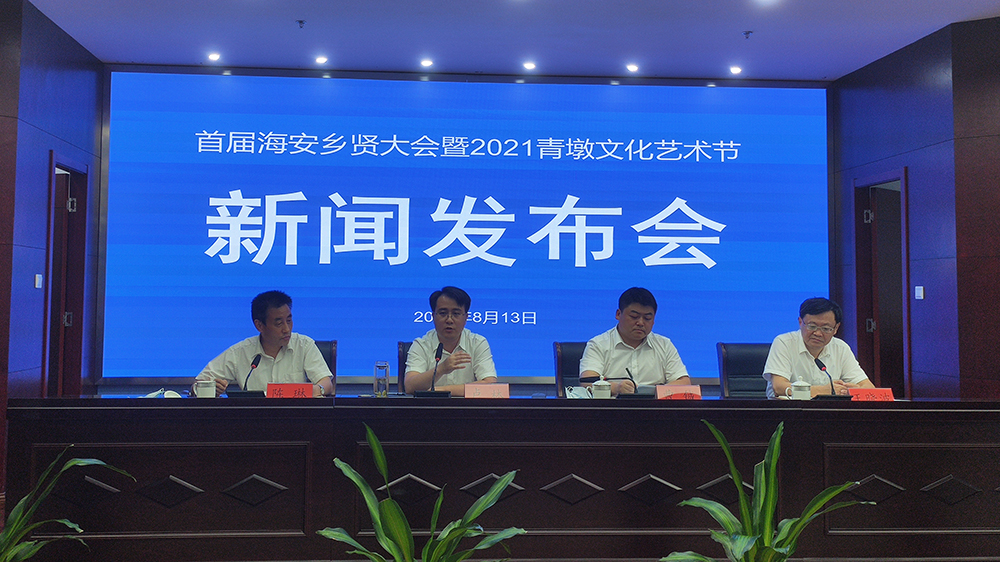 8月13日下午,江蘇海安市委宣傳部召開新聞發佈會對外發佈,由海安市委、市政府主辦的首屆海安鄉賢大會暨2021青墩文化藝術節將於9月19日至20日舉辦,活動主題為「聚力天下鄉賢,共建美麗海安」。