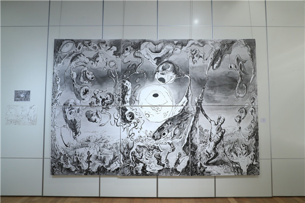 在展覽現場,梅千千畫作的超現實主義題材引起許多關注。