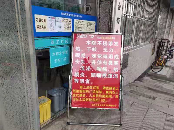 記者在鐵西區篤工社區衛生服務中心看到,在中心醒目位置張貼不接診發熱、乾咳、乏力、嗅覺味覺減退或消失、鼻塞、流涕、咽痛、肌肉痛、結膜炎、腹瀉等症狀患者標識。公示有健康和行程二維碼;顯著位置設有鐵西區醫療機構疫情防控公示板並且及時更新重點管控地區、重點關注地區變化以及最新疫情防控要求等內容。