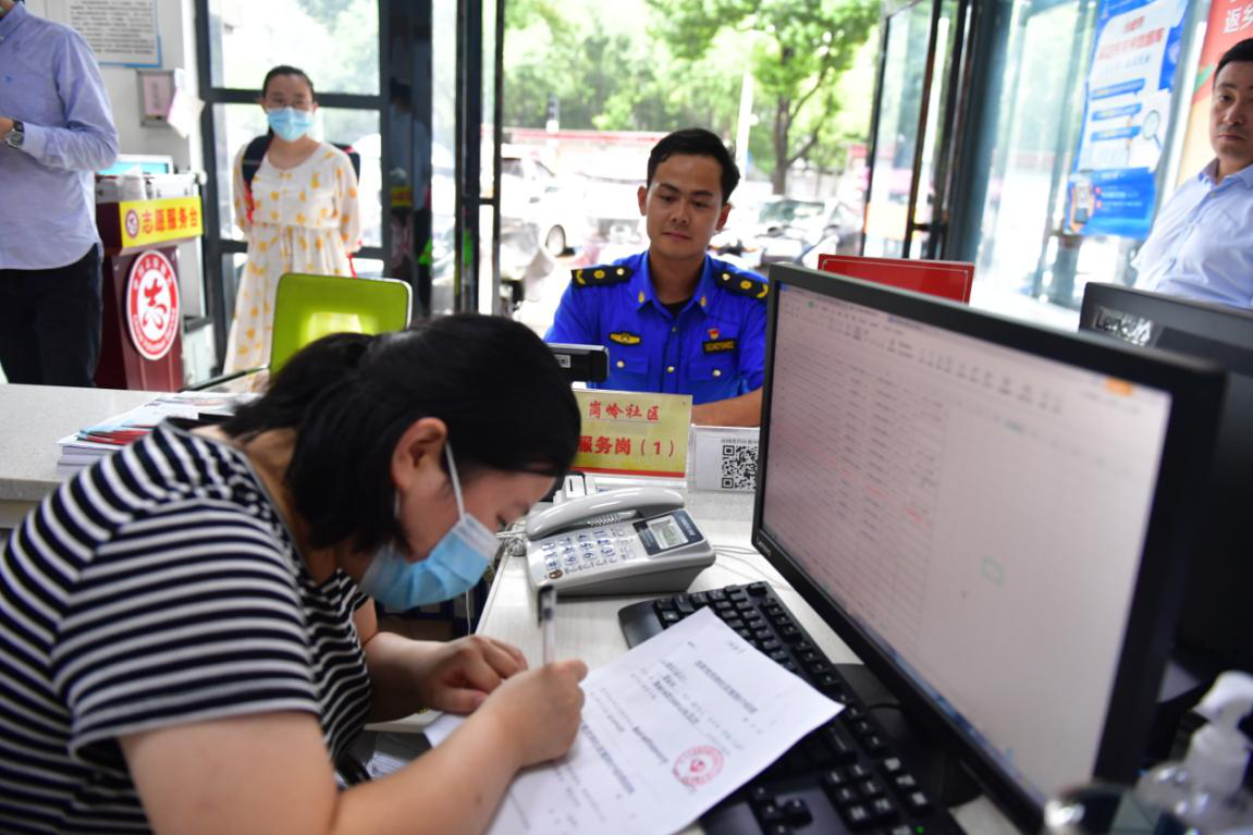 8月16日下午,安徽省巢湖市交通局質量監督服務中心預備黨員馮家俊冒雨來到巢湖市鳳凰山街道黎明社區黨群服務中心,向社區工作人員遞交了《在職黨員到社區報到介紹信》。登記、填表、掃碼、定網格地.......在履行簡單的手續後,馮家俊領到了《在職黨員到社區報到介紹信回執》,標誌着報到事項結束。