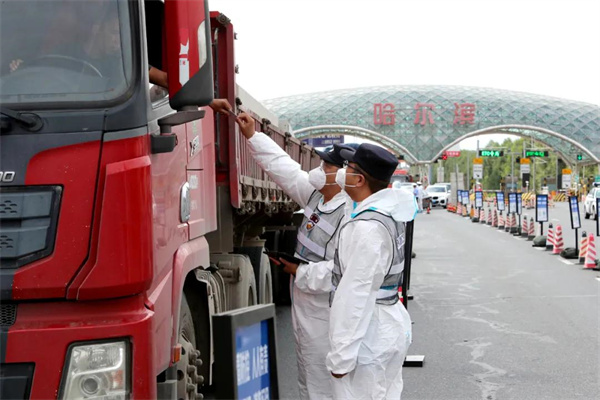 蘭棱檢查站位於102國道黑、吉兩省交界處,是龍江邊界的一道護城牆。為全力應對近期疫情輸入風險,堅決防止疫情反彈,雙城分局堅持高點站位,對疫情防控工作進行再細化、再部署,堅持「兩個結合」,即常規與重點查控相結合、人防與技防相結合,提高查控力度和強度,對過往車輛、人員開展檢查,並對重點對象、重點車輛列表登記,逐人逐車進行身份核查,確保不漏一車一人,切實守好龍江南大門。