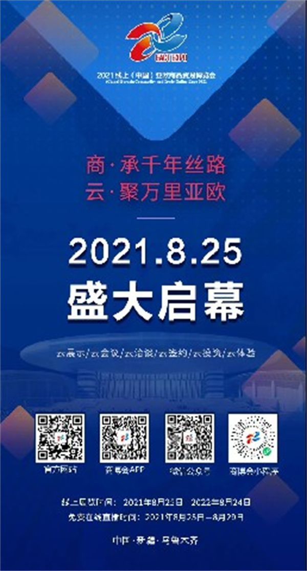 2021線上(中國)亞歐商品貿易博覽會(簡稱「2021商博會」)將於2021年8月25日正式啟幕。本屆展會以「構建絲路商貿平台,助推經濟合作共贏」為主題,首次採用線上方式舉辦,展開線上論壇、在線直播、採購對接會等活動,全方位呈現展會盛況、參展企業形象、參展商品等內容。