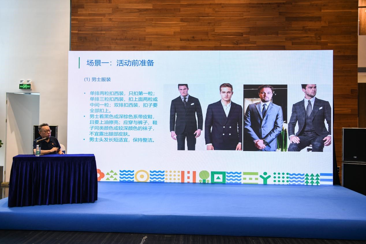 活動開始後,邱永樂處長首先介紹了國際化街區建設的背景和相關要求,提出了國際化街區建設工作的重要性。他以涉外禮儀為主題,結合自己多年外事工作的經驗,講解了涉外禮儀的概念、意義和基本原則。邱處長強調,涉外禮儀的基本內容,就是國際交往慣例,就是所應了解並遵守的國際慣例;禮儀是衡量一個人文明程度的準繩,不僅反映着一個人的交際技巧與應變能力,而且還反映這一個人的氣質風度、閱歷見識、道德情操、精神風貌;在涉外交往中,要遵守不卑不亢、求同存異、信守承諾、尊重私隱和女士優先的基本原則。隨後,通過生動的場景解析,邱處長分享了各種外事場合的涉外禮儀,包括服裝、見面禮、站姿、坐姿、交談、致辭、簽約、餐飲、風俗、觀看演出等。最後,參會人員一起觀看《深圳公務人員涉外禮儀指南》,進一步了解涉外禮賓禮儀,提升自身的修養,在涉外交往中自覺維護桃源國際化街區的良好形象。