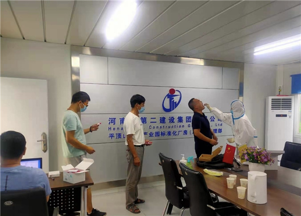 來到河南神馬印染有限公司建設年產8萬噸化纖印染項目一期施工現場,記者經過測體溫、出示健康碼、行程碼、登記後進入施工現場。「工地要求很嚴,不但佩戴口罩,每個人都得測體溫、掃碼、登記。」該項目負責人介紹,在做好疫情防控的同時,他們正全力趕工期,目前廠房主體框架已完成,二次結構施工完成90%,進入水電安裝、裝飾施工環節。
