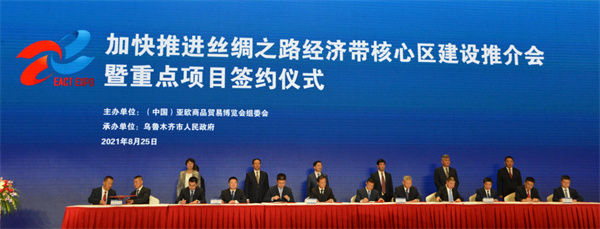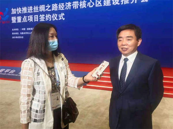 2021線上(中國)亞歐商品貿易博覽會「加快推進絲綢之路經濟帶核心區建設推介會暨重點項目簽約儀式後,本報記者採訪專場簽約承辦方烏魯木齊市招商服務局黨組成員、副書記、副局長張衛,她告訴記者,本屆展會首次採用「躍上雲端」的形式舉辦線上推介會,充分利用一體化展會服務系統,採用主會場+分會場形式,實現雲簽約功能。此次主會場簽約項目6個,計劃投資總額530.88億元;14個分會場簽約項目共219個,計劃投資總額1424.25億元。