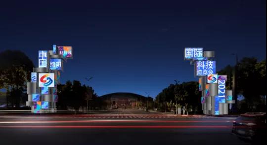 科博會作為綿陽以及四川對外交流、開放合作的重要平台,已經成為舉世矚目、影響廣泛的國際科技博覽盛會。此次科博會期間,將在九洲體育館以及會展中心南廣場增加兩處城市科技元素,通過科技手段和智能場景運用,展現綿陽的城市魅力。將在九洲體育館綿興路出入口設置「機械魔方」,通過體塊疊加形成機械臂的造型,呈現不同尺寸形式的電子屏幕,以多維度光影變化呈現展覽海報內容;在會展中心南廣場設置「星辰之傘」,創作靈感源於仰望星空,夜間地面燈光開啟,進入繁星滿天的宇宙空間,華美絢爛,燦爛星空下仿佛開啟了時空對話。