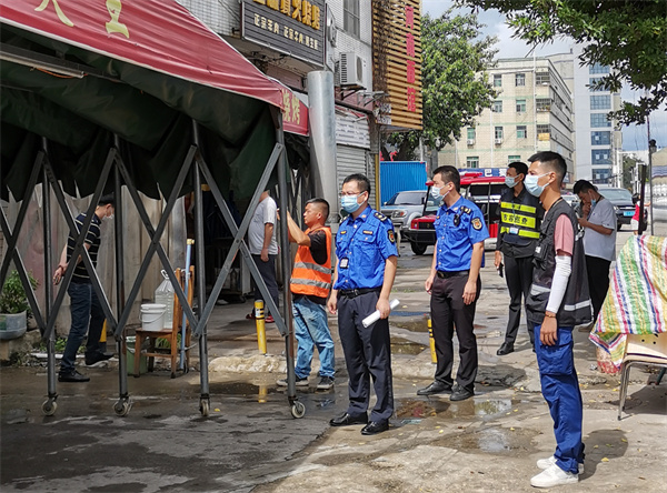 執法人員和整治隊員堅持「文明執法,依法執法」的原則,以宣傳、教育、引導為主要管理手段,先對商家進行思想溝通,告知商家所違反的條例,並對超門線經營行為進行整治、對亂搭建雨棚進行拆除等。