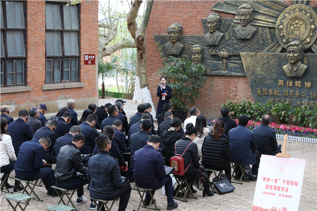 五十多年前,鄧稼先、于敏、王淦昌等一大批青年科學家,懷揣「鑄國防基石,做民族脊樑」的遠大抱負,書寫了「紅雲沖天照九霄」的驚世傳奇,拋家離子,隱姓埋名,孕育出「熱愛祖國、無私奉獻,自力更生、艱苦奮鬥,大力協同、勇於登攀」的「兩彈一星」精神。幹部學院集中在王淦昌舊居、兩彈元勛功勳牆、元勛家風館打造了《王淦昌:永恆的行星》、《為信仰而來 為使命而戰》、《元勛家風:忠厚傳家久 詩書繼世長》三堂微黨課,分別講訴以王淦昌、鄧稼先為代表的「兩彈一星」科學家們紮根大漠深山、隱姓埋名、默默工作的愛國奉獻精神,以及元勛家風對他們成長的影響。從他們到我們,有效連結起了一條弘揚和傳承「兩彈一星」精神的有效路徑。