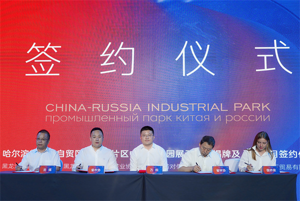 8月27日,繼萬科中俄產業園產業示範商街正式開放後,哈爾濱新區暨自貿區哈爾濱片區中俄產業園展示中心揭牌,黑龍江省對俄農業產業協會、黑龍江省對俄林業產業協會、黑龍江龍媒教育集團、哈爾濱俄橋樑國際貿易有限公司等首批項目正式簽約入駐。