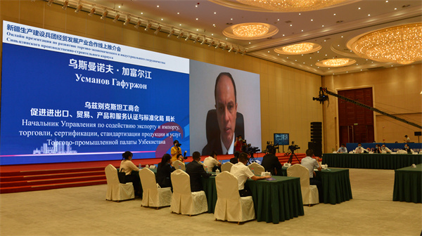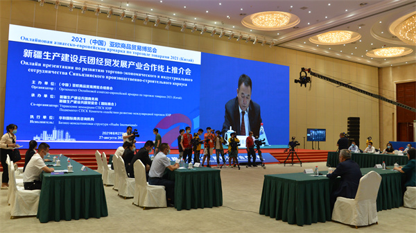 8月27日下午,在2021線上亞歐商品貿易博覽會上,新疆生產建設兵團經貿發展產業合作線上推介會召開。來自中國、俄羅斯、烏茲別克斯坦、塔吉克斯坦、哈薩克斯坦等國的中外官員、企業家們相聚雲端,共同商討加強經貿發展和產業合作的前景和機遇。
