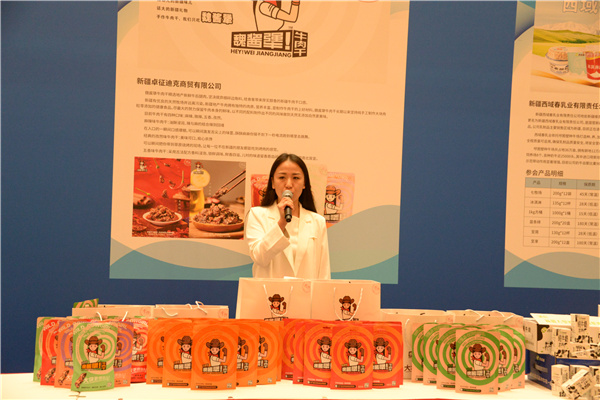 會後,記者採訪了新疆卓征迪克商貿有限公司魏醬犟牛肉乾品牌的創始人魏雅欣,她說,新疆有優良的天然牧場,牧草肥沃,遠離污染,新疆地產牛肉擁有獨特的肉質,營養豐富,是製作牛肉乾的上好材料。希望通過此次會議,讓更多的朋友來我們新疆做客,看新疆風景,品新疆美食。