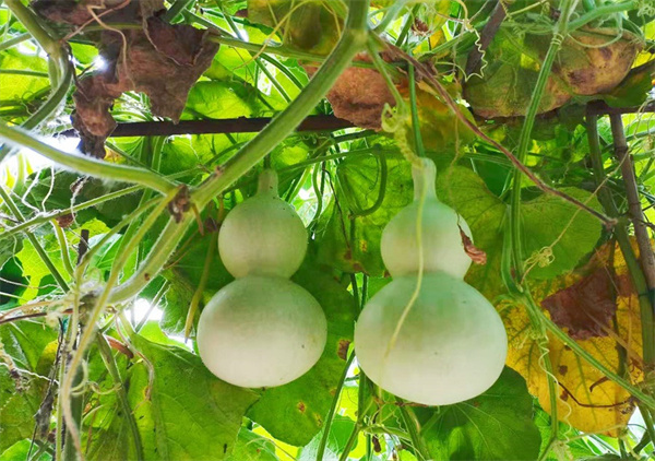 「種葫蘆好啊,村里給的葫蘆苗,平時也不用精心伺候,就靠下雨天的雨水就能活!」王麗紅說,平時她和丈夫都上班,沒有太多空餘時間打理園子,種植葫蘆輕鬆省力,不僅可以扮靚庭院,還可以讓家裏多一份「葫蘆收入」。
