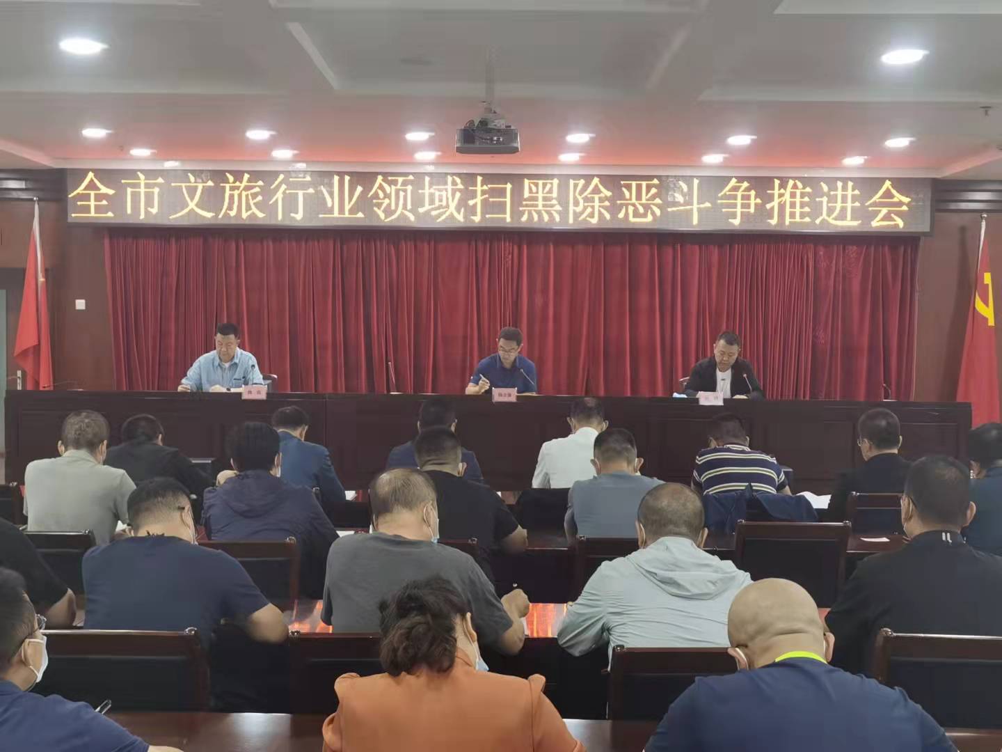 會議傳達學習了全國第一次掃黑除惡常態化暨四大行業領域整治推進會會議精神、省掃黑除惡鬥爭領導小組第一次全體(擴大)會議暨四大行業領域整治推進會議精神。對下一階段全市文旅行業專項整治工作進行了安排部署。