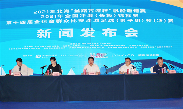8月31日,記者從新聞發佈會上獲悉,2021年北海「絲路古港杯」帆船邀請賽、2021年全國衝浪(長板)錦標賽將於9月17日至20日在廣西北海舉行,第十四屆全運會群眾比賽沙灘足球(男子組)預(決)賽將於9月21日至26日舉行。