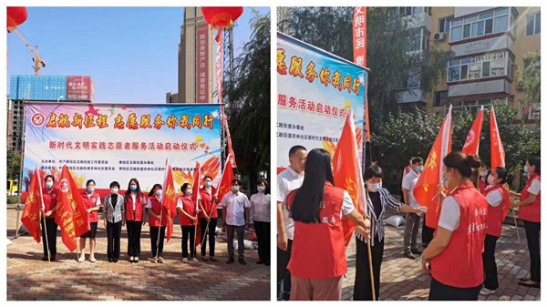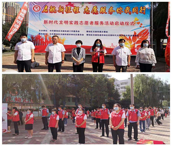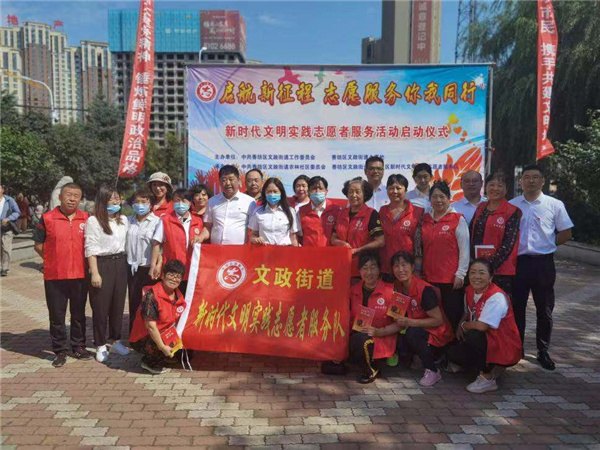 9月2日,哈爾濱市香坊區文政街工委主辦、文政街道農林社區承辦的以「啟航新征程 志願服務你我同行」為主題的新時代文明實踐志願者服務活動啟動儀式在文治廣場隆重舉行。香坊區委宣傳部常務副部長李少華、文政街工委書記金革偉及街工委班子成員、文政街道機關幹部、社區工作人員、轄區企事業單位、文政街道新時代文明實踐所、站志願服務隊隊員130餘人參加活動。