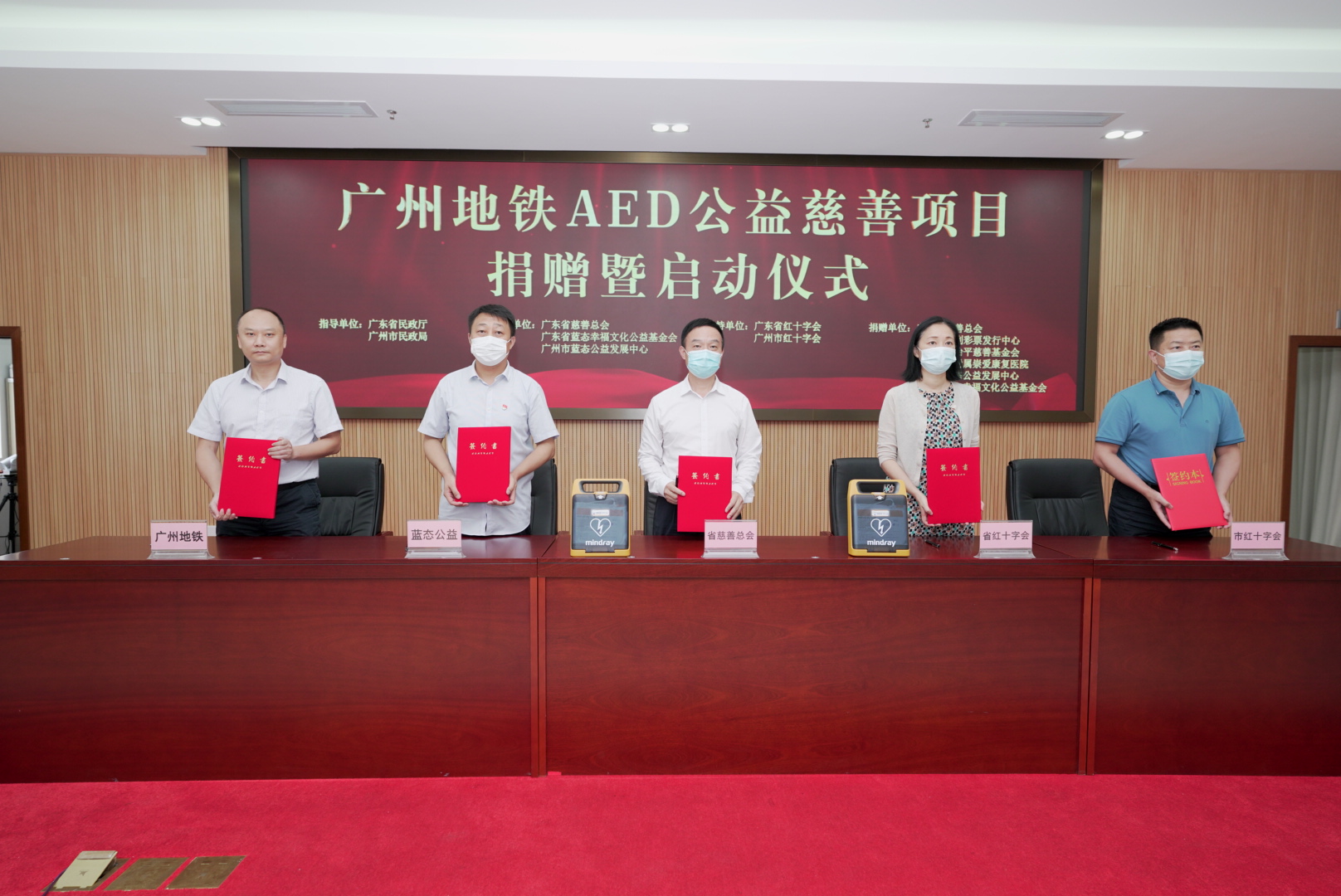 9月5日,是中國第六個「中華慈善日」。當日,廣東省慈善總會、廣東省紅十字會、廣東省藍態幸福文化公益基金會、廣州市紅十字會、廣州市藍態公益發展中心聯合為廣州地鐵無償捐贈194台AED(自動體外除顫器)設備。據悉,該批194台AED計劃於年內完成安裝調試投入使用,加上此前已配備的119台AED設備,廣州地鐵將在年內實現所有車站AED全覆蓋。此舉進一步提升廣州軌道交通出行應急處置能力,助力廣州創建全國「慈善之城」。
