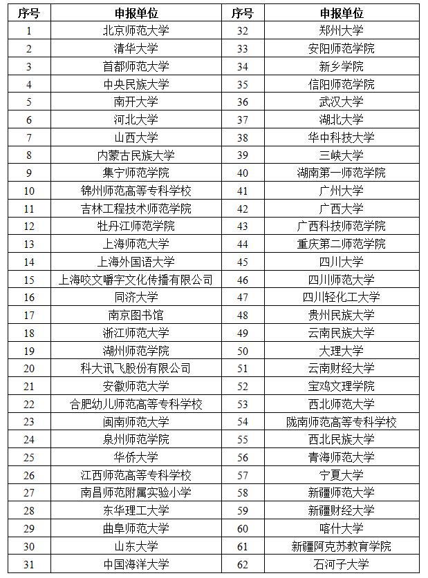近日,教育部官網公示《第二批國家語言文字推廣基地擬入選單位名單》,擬確定62家單位為第二批國家語言文字推廣基地。其中,新疆師範大學、新疆財經大學、喀什大學、新疆阿克蘇教育學院、石河子大學入選。